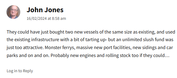 新西兰网友对此评论道:“他们本可以只购买两艘与现有船只尺寸相同的新船,然后使用现有的基础设施,稍微升级一下 —— 但无限制的融资基金实在太诱人了。巨型渡轮、大规模的新港口设施、新的船舷和停车场等等。如果可能的话,也许还会购买新的引擎……”