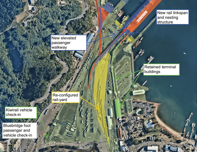 因此,kiwiRail早在2019年年初就做出决定并发布公告,要在2024年前替换掉三艘老化渡轮中的两艘。除此之外,他们还打算对渡轮的配套设施,也就是南北岛两侧的码头进行全方面升级。大惠灵顿地区议会的战略委员会在公告发出前两个月制作的一份报告中称,新的船舶预计于2022年就位,届时将需要新的码头设施和额外的基础设施。