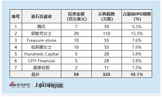 基石投资者阵容方面,本次发行共引入7家基石投资者,合计投资5900万美元,占基础IPO发行规模的45.1%。但从阵容质量来看,除腾讯(投资700万美元)、Hundreds Capital(投资500万美元)等老股东及产业投资者晶泰控股(投资200万美元)外,其余多为市场影响力有限的机构及郭敏芳女士、包莉娜女士等个人投资者,难以形成强有力的市场背书。