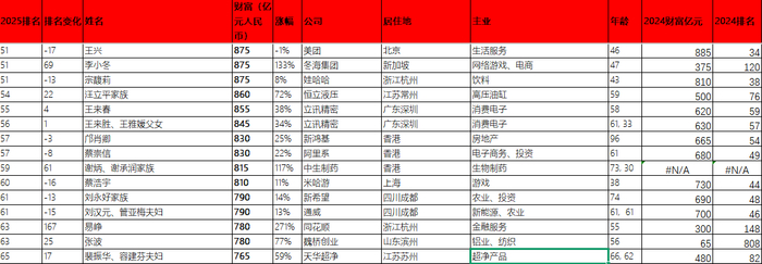10月28日,《2025胡润百富榜》显示,美团创始人王兴最新财富为875亿元人民币,比上年减少约10亿元,跌幅达1%。排名从去年的第34名下降至第51名,下滑十七位。王兴年龄46岁,美团的主业为生活服务,通过餐饮外卖这一高频业务为核心,协同驱动到店、酒店旅游、社区电商等多元生活服务业务的增长。