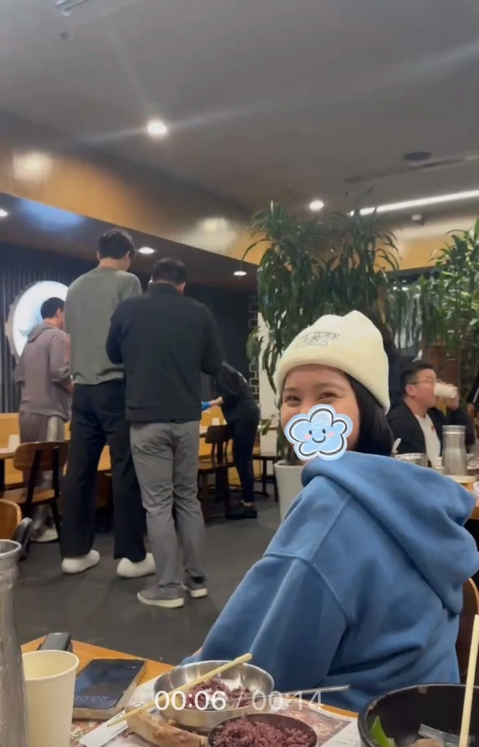 赛后,有中国球迷在洛杉矶当地著名韩料店Sun Nong Dan偶遇杨瀚森携女友以及团队其他成员一同吃夜宵。