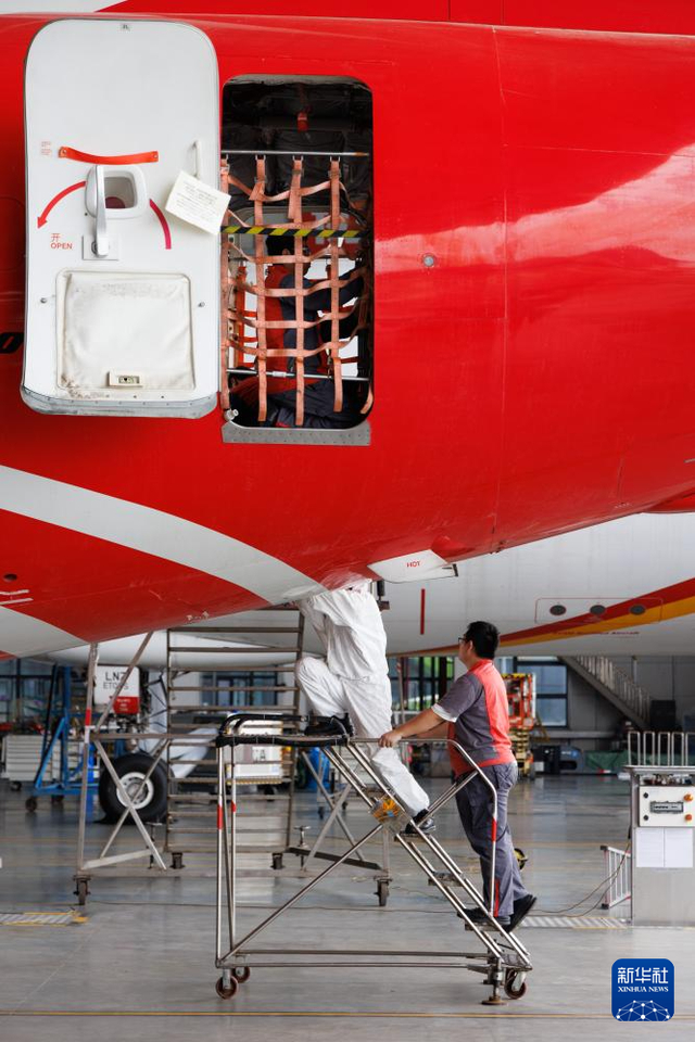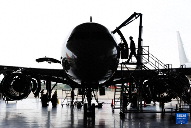 12月9日,工作人员在海南自贸港一站式飞机维修产业基地维修飞机。12月18日,海南自由贸易港将正式启动全岛封关运作。目前,海口海关实施航空器维修免关税服务新模式和备案航空发动机直通入区监管模式,一站式飞机维修产业基地维修服务能力全面提升。维修基地目前已经满额运作,共有11架次境外飞机在维修。 新华社记者 金立旺 摄