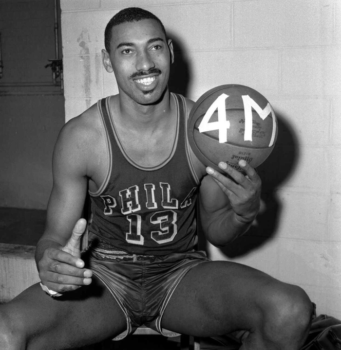 1962年3月3日 勇士169-147尼克斯 出战48分钟 63中36&罚球32中28 100分25板2助