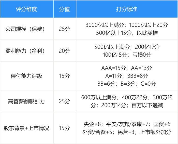 给每家寿险公司打分