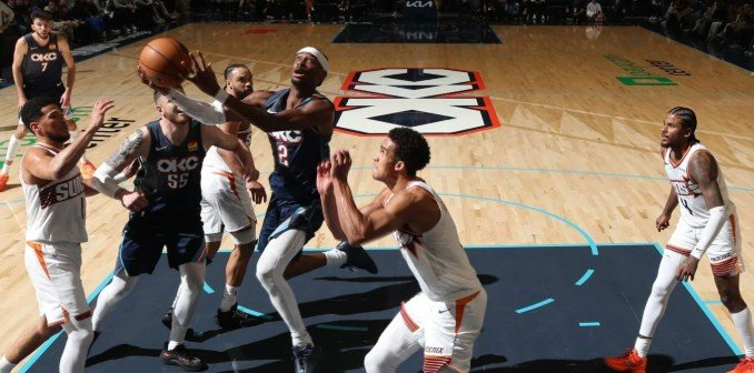 这似乎是布克的一点问题:论半场攻防布局,经过和保罗的岁月,他已经很稳当了;但快速往返中要组织进攻,他会稍微差一点,也没有亚历山大当机立断那么快。所以视觉上就会显得,亚历山大比布克要干脆。