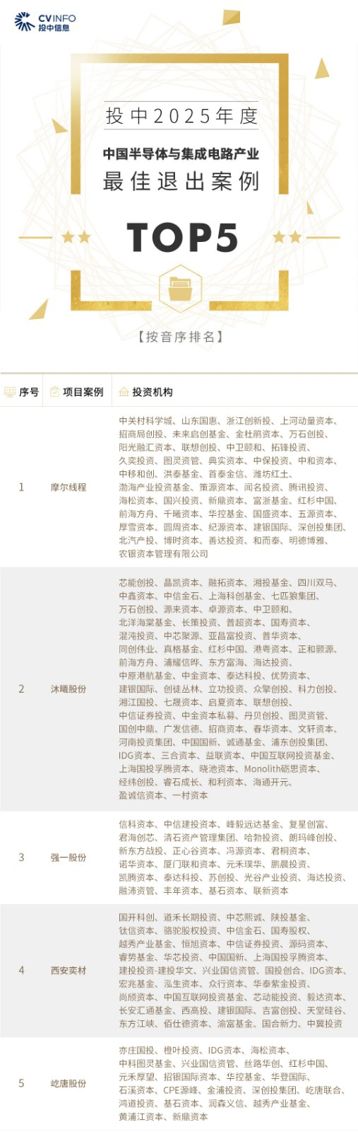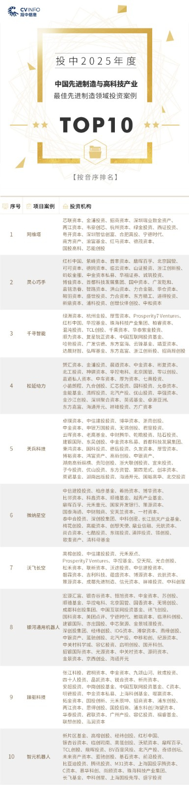 当行业谈论复苏时,数据揭示了一个残酷真相,这似乎并不是一场普惠的春天,而是一次深刻的分化。人民币基金的绝对主导与美元基金的结构性回潮、人工智能与硬科技投资的空前集中、以及退出的能力演化与新机会的涌现,共同组成了这个全新的周期。一、人民币基金的主导地位与美元基金的结构性回潮如果说过去是人民币与美元的双舞台,那么现在,灯光已聚焦于人民币基金。以最佳创业投资机构榜单的上榜机构为例,中资与外资机构的数量占比在2023年度约为2:1,2024年度和2025年度则约为3:1和7:3,人民币基金的主导地位持续稳固。美元基金这边,在沉寂三年后2025年出现了回潮迹象。包括光合创投、Monolith砺思资本、渶策资本等机构在2025年进行了新一轮募资,被视为近年来最大规模的美元回流,打破了自2022年以来的低迷,也被视为全球资本重新评估中国市场的重要信号。二、投资的主题统一而坚定‍依据投中嘉川CVSource,2025年电子信息行业累计发生3,485起投资交易,同比上涨36%;先进制造和医疗健康行业作为第二梯队分别以1,983起、1,594起交易数量分列第二、第三位,同比上涨75%、29%。细分领域,半导体、人工智能领域大幅领跑,获投数量分别为1,434起、891起。从近十年细分领域在市场占比情况来看,新材料、机器人、航空航天、新能源领域更为突出。榜单数据同样显示,资金正以前所未有的密度涌向半导体、人工智能、先进制造等硬核科技领域。仍以本次最佳创业投资机构榜单为例,上榜机构在前述领域的投资项目数量占比约为65%。这并非简单的热点轮动,其背后是由国家战略、产业链安全需求和长期资本意志共同驱动的系统性迁移。投资机构的专业能力,正被重新定义为在特定领域的产业深度与赋能能力。在国家意志与政策推动的关键领域,如半导体这样的“卡脖子”赛道,市场出现了有趣的结构性变化。以沐曦、摩尔线程为代表的国产GPU企业,背后聚集了上海科创基金、引领区基金、国调基金等国资平台,同时红杉中国、经纬创投、混沌投资等市场化头部机构也深度参与。综合型基金与地方国资的强势进场,正以其强大的资源链接和战略耐心,深度定义着哪些赛道值得下注、何种企业能够长大。市场的游戏规则,正在被改写,这不仅是一笔笔财务投资,更是国家战略的资本化延伸。三、退出的能力演化与新机会的涌现退出难的旧命题,在2025年演变为如何退出的新考题。随着二级市场估值逻辑与准入标准的变化,单纯依赖IPO退出的路径越走越窄。投中嘉川CVSource显示2025年,共有294家中企实现IPO上市,其中170家上市公司身后有VC/PE机构背景,渗透率小幅回落至57.8%。退出能力,不再仅仅是运气或等待,而是主动设计交易、链接产业资源的综合体现,这正在成为区分机构层级的关键分水岭。与此同时,中国企业的全球化能力正在成为新的价值锚点。影石创新作为典型案例,从极限运动相机起步,逐步成长为全球消费级全景相机销售额占比首位的企业,这不仅是商业成功的案例,更是中国向全球输出文化与品牌影响力的典范。长期资本在影石创新等标的上实现的可观回报,将形成强大的示范效应,进一步带动LP与GP对长期投资的信心与参与度。市场还有一个令人瞩目的变化,头部项目的增值速度正在回到互联网时代的疯狂节奏。在AI早期快速迭代的特点驱动下,优质项目的估值曲线愈发陡峭,月之暗面估值三个月狂飙四倍冲破180亿美元,这样的增长幅度和速度,似乎回到了那个获得百倍回报的时代。市场的残酷性在于,复苏的暖流并非均匀流淌。头部机构在募资、获取项目、退出等各个环节的虹吸效应愈发显著,它们凭借品牌、生态和规模优势,构筑起宽阔的护城河。与此同时,大量中小机构生存压力依然严峻。这场分化,正驱动行业走向两个方向:一端是平台型巨头的生态化竞争,另一端则是垂直领域专家的极致化深耕。分化的表象之下,是行业价值内核的重塑。榜单的年度更迭,不仅是排名的变化,更是行业进化方向的忠实记录。那些能够认清趋势、找准定位、并以此构建起独特竞争壁垒的机构,无论规模大小,都将在新的地图上找到自己的坐标。投中信息连续20年作为独立的第三方机构发布中国创业投资机构暨私募股权投资系列榜单——“投中榜”。依托投中嘉川CVSource,结合对超千家私募股权领域活跃投资机构调研,投中研究院参照评选标准复核数据、甄选优秀机构。因此,“投中榜”在业内能以专业、权威和严谨著称,被称为国内股权投资行业的风向标,并且是诸多大型机构LP的重要出资依据。本次榜单共揭晓“2025年度中国最佳创业投资机构”、“2025年度中国最佳私募股权投资机构”、“2025年度中国最佳早期创业投资机构”、“2025年度中国最佳产业投资机构”等奖项。榜单详情如下: